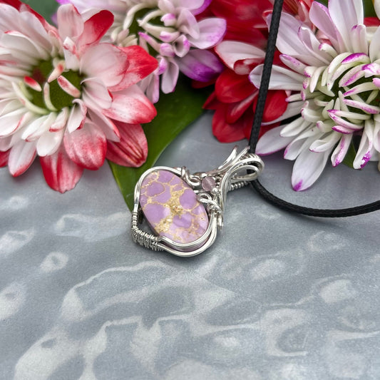 Phosphosiderite with Rose Quartz in Argentium Silver