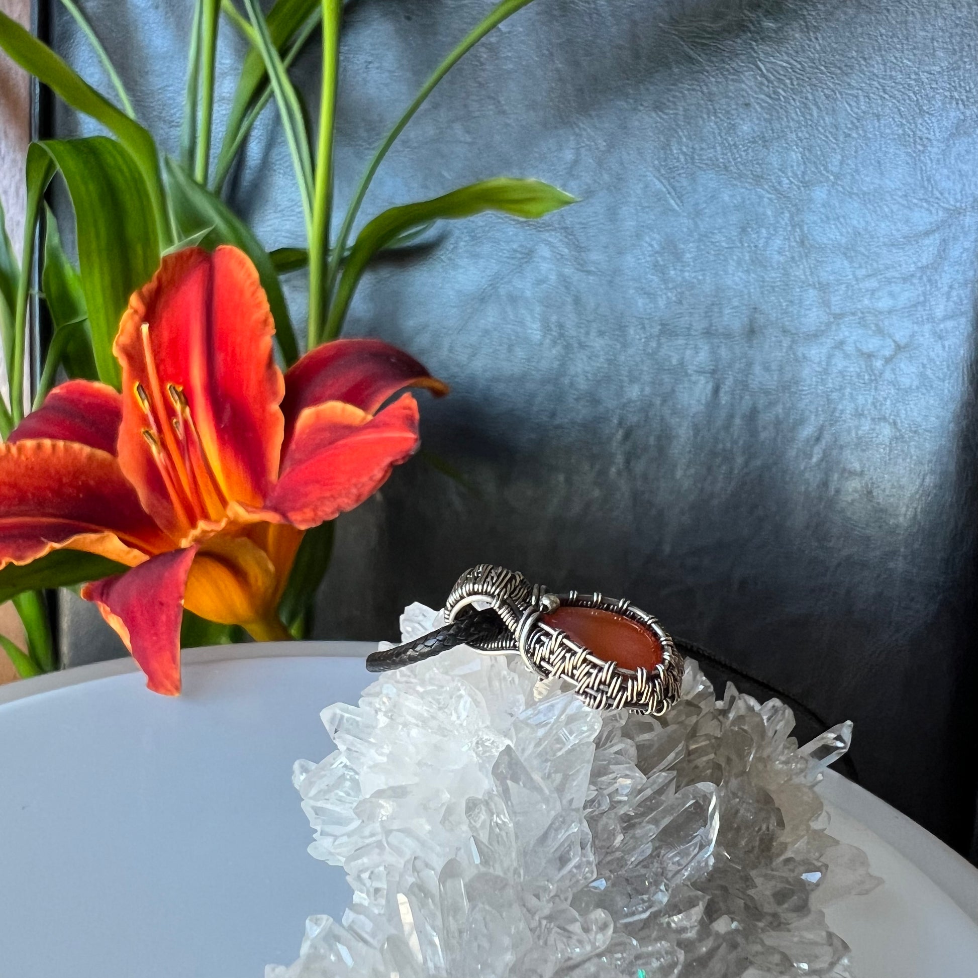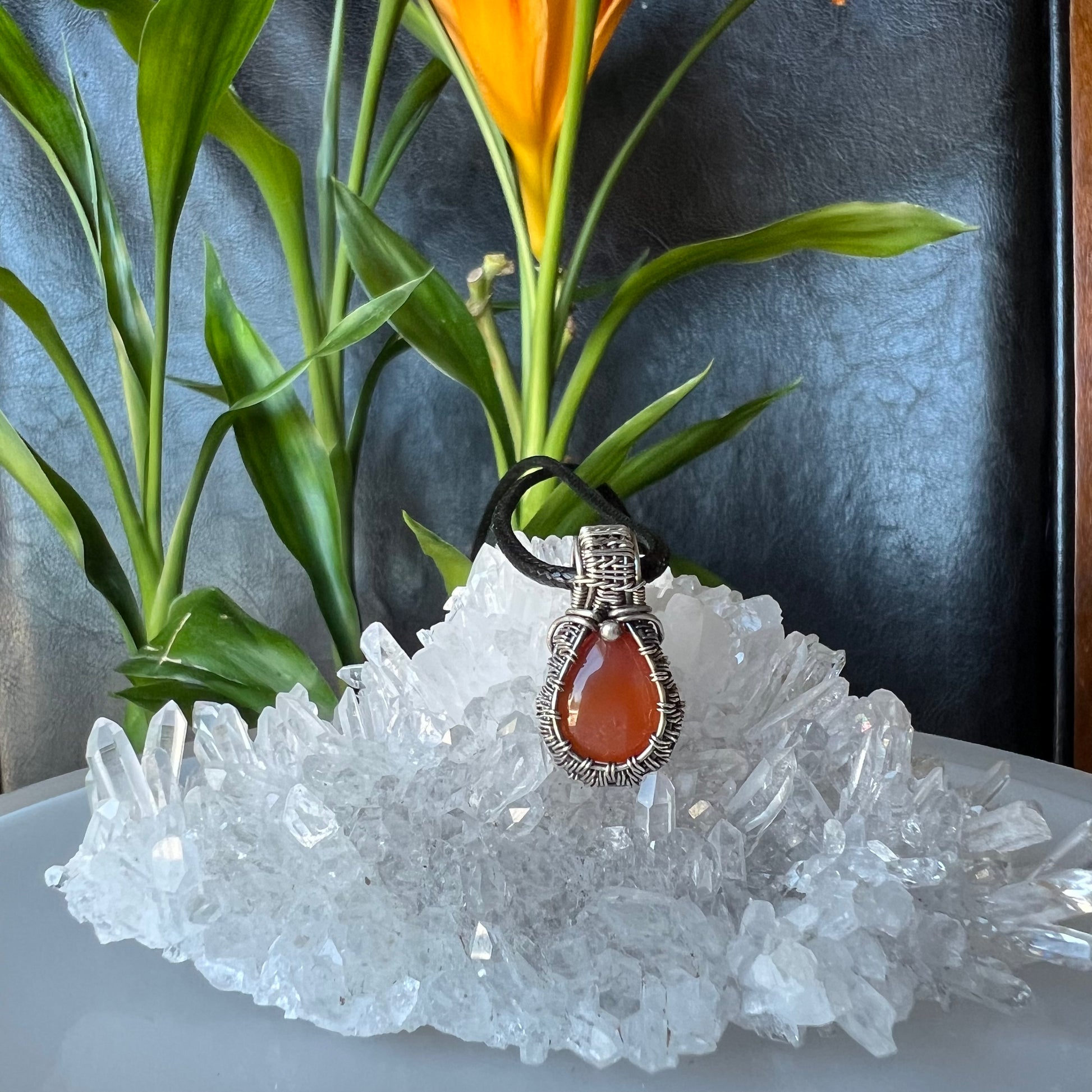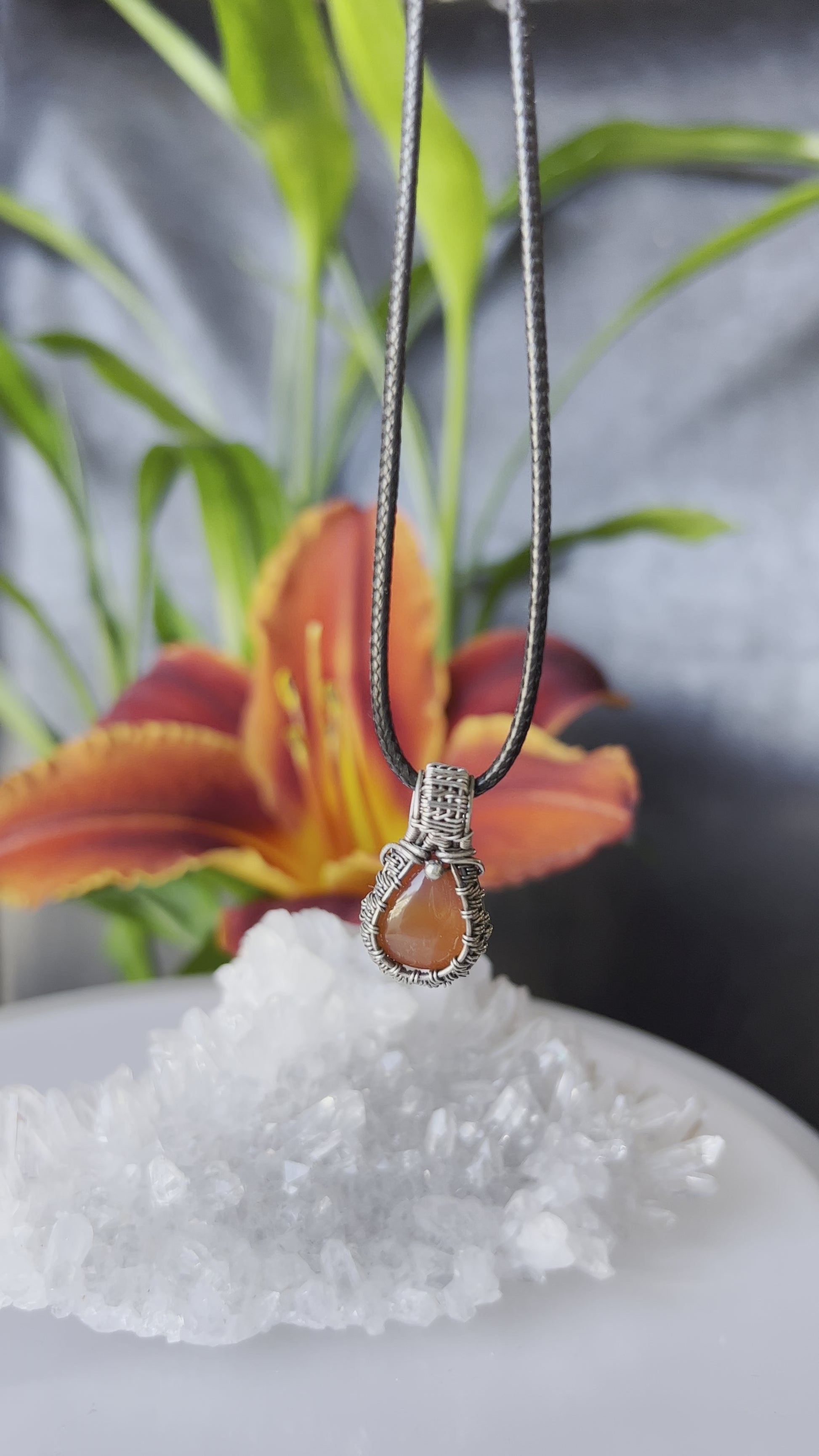 This beautiful mini pendant features a Carnelian, set in Solid Sterling Silver. This piece has been oxidized and hand polished.