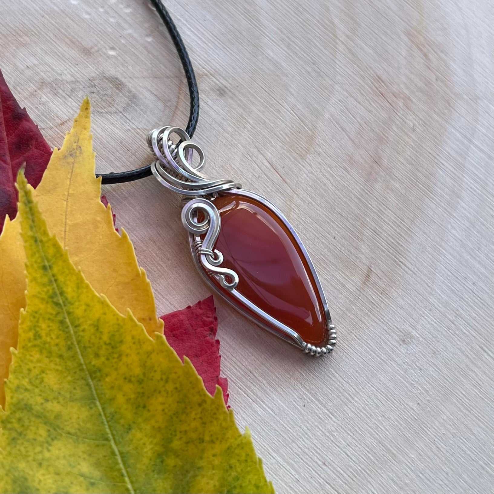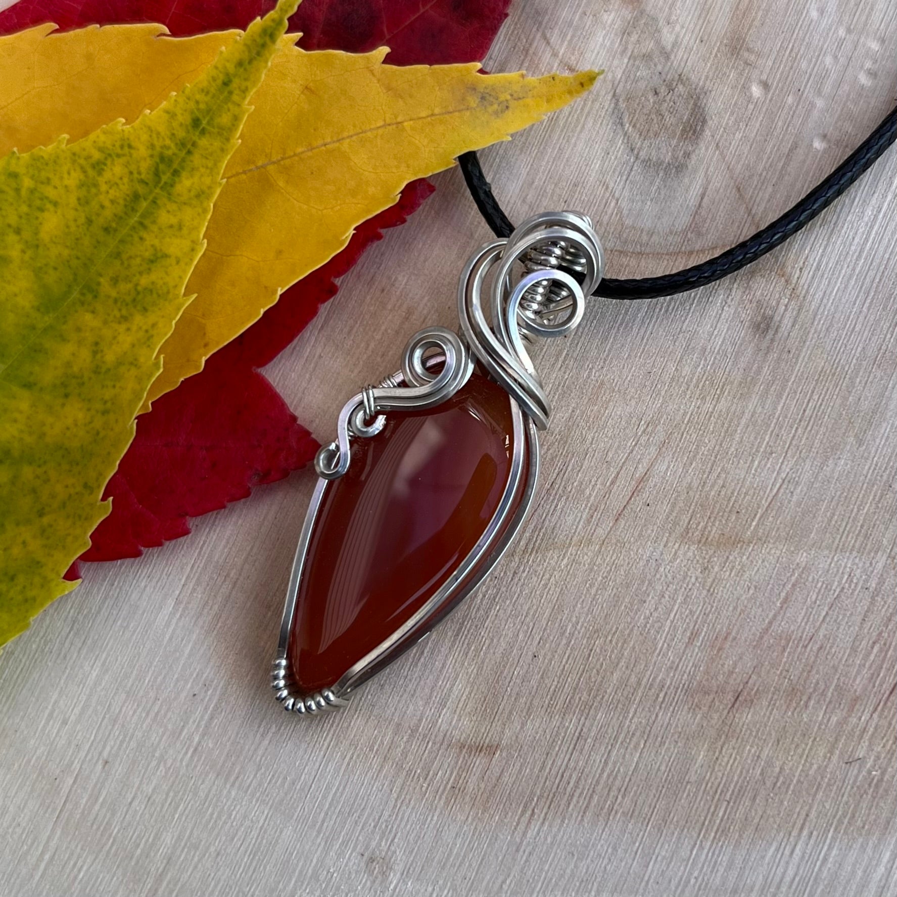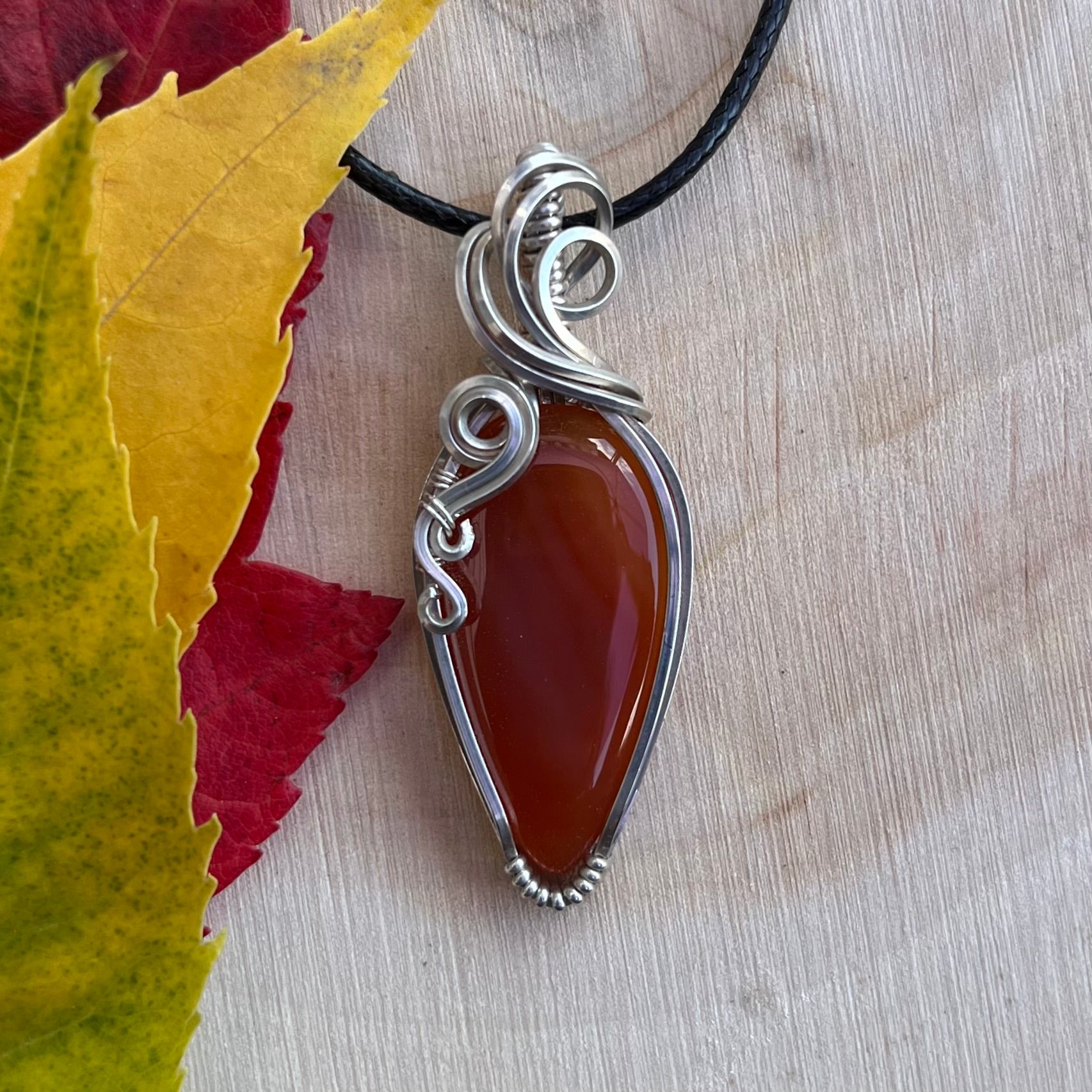 Beautiful pendant featuring Carnelian, set in Argentium Silver wire.