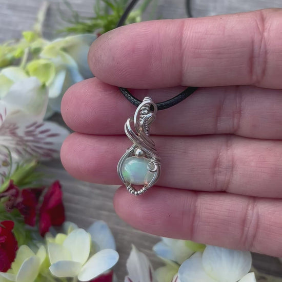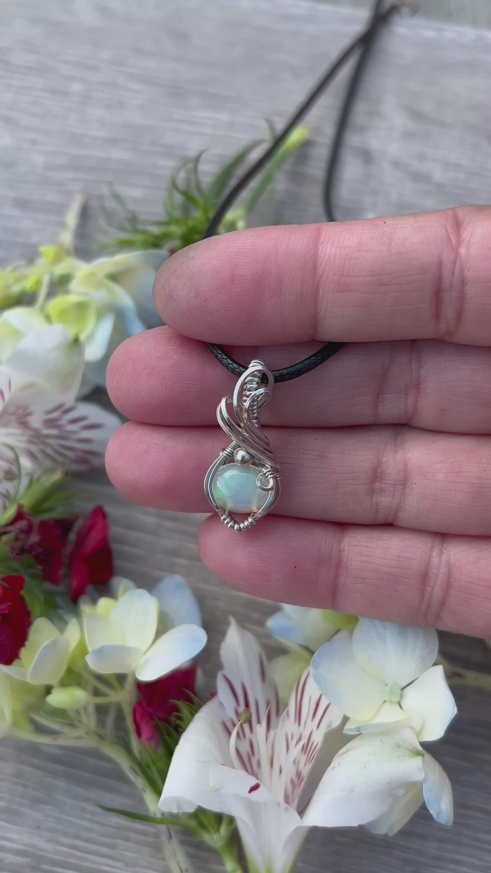 This dainty and elegant pendant features Ethiopian Opal, wrapped in Argentium Silver.