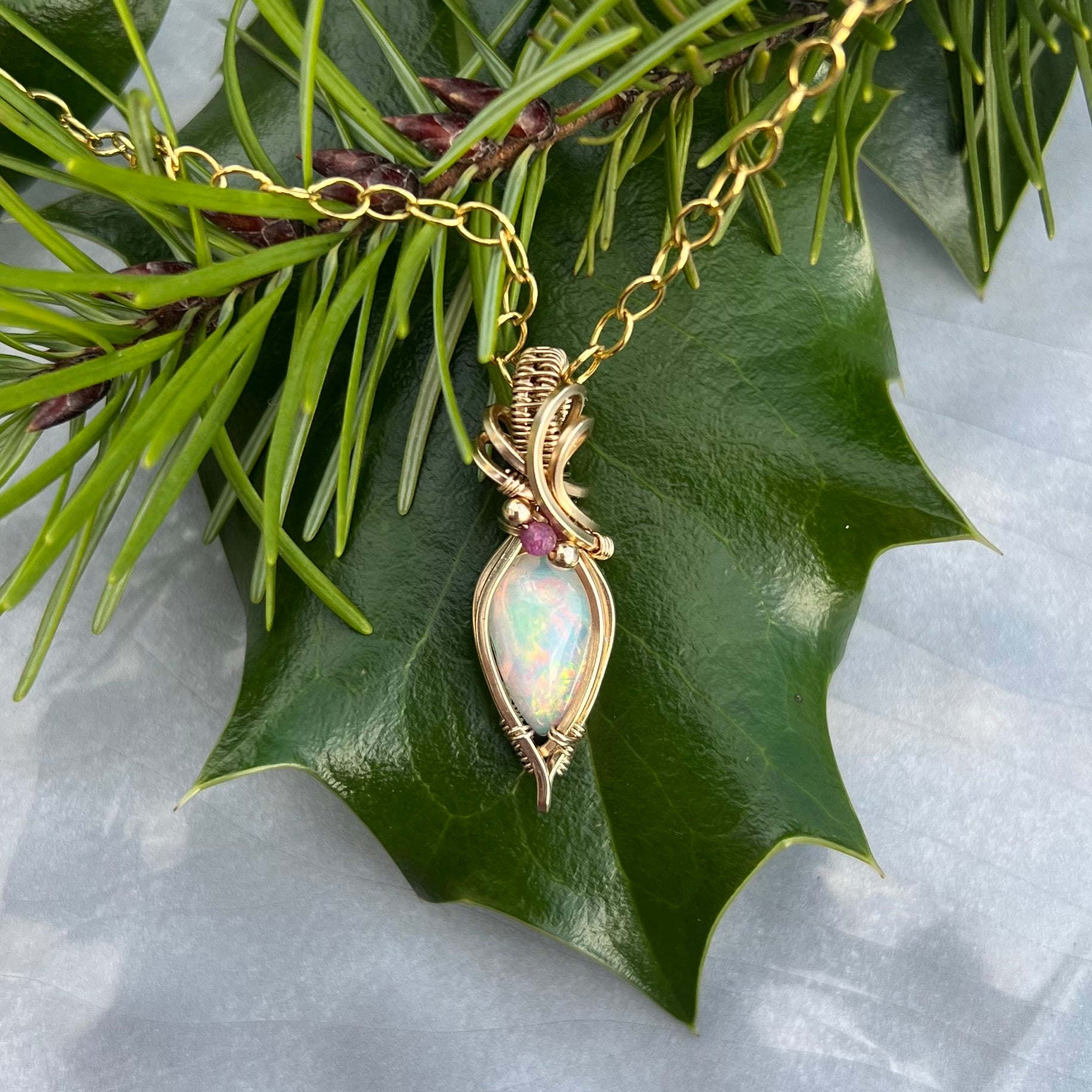 Ethiopian Opal with Ruby in Gold-Filled Wire Pendant