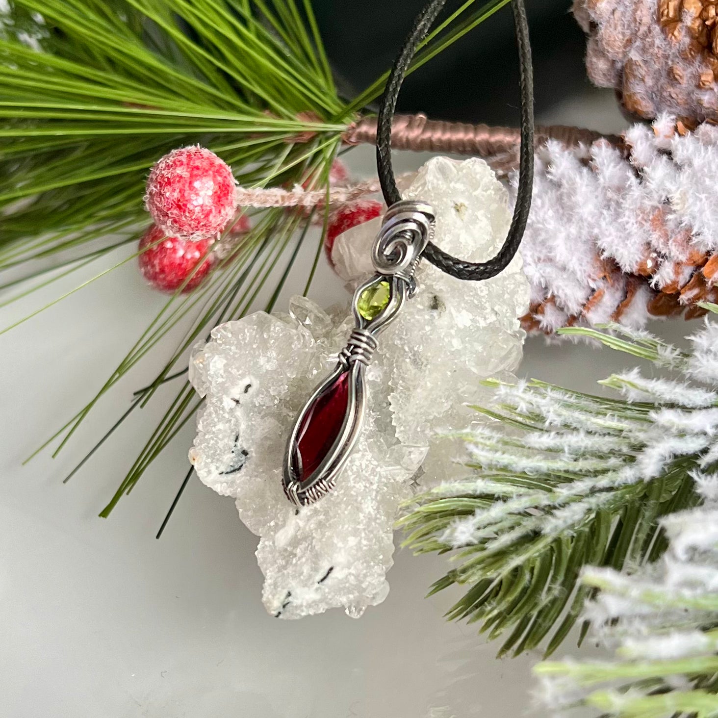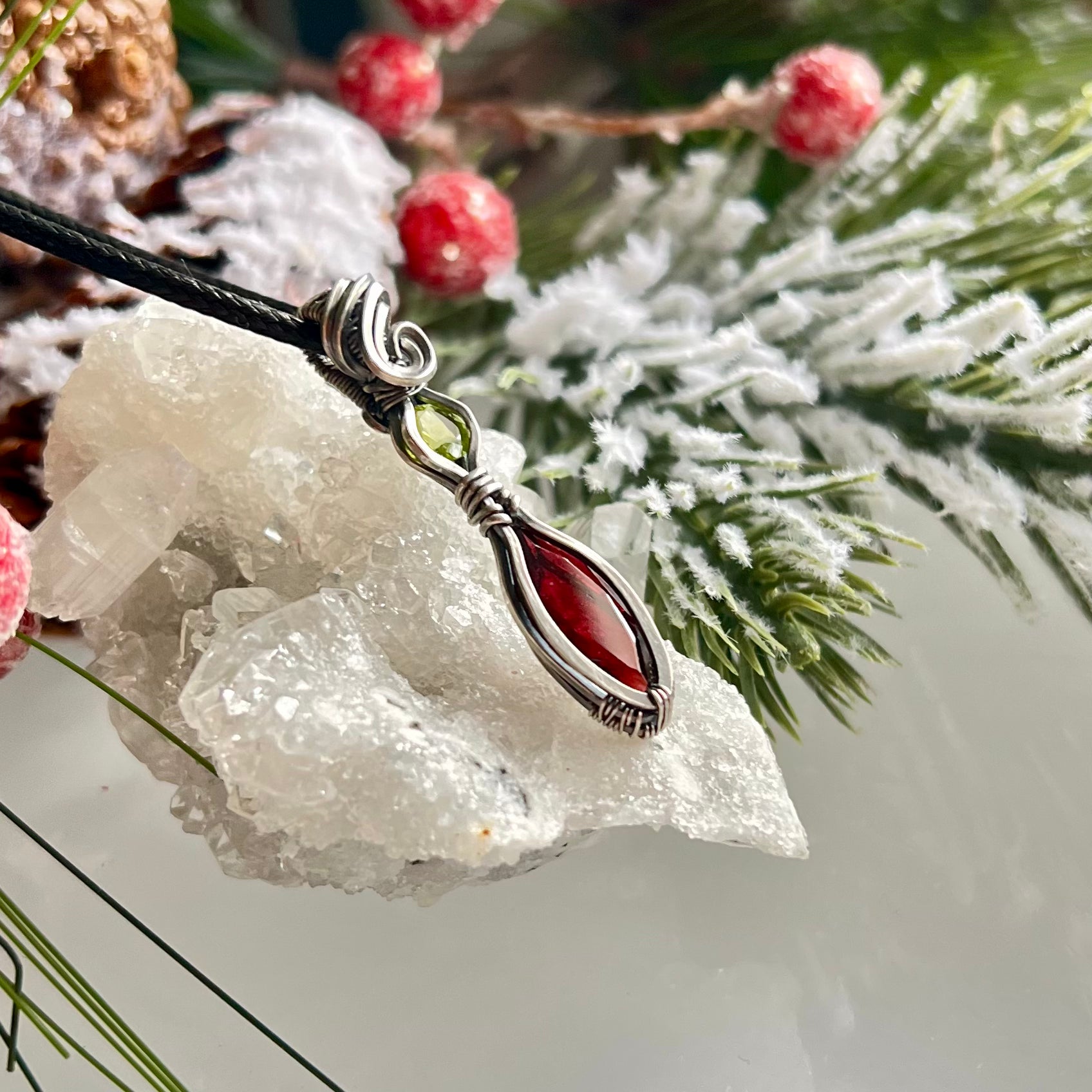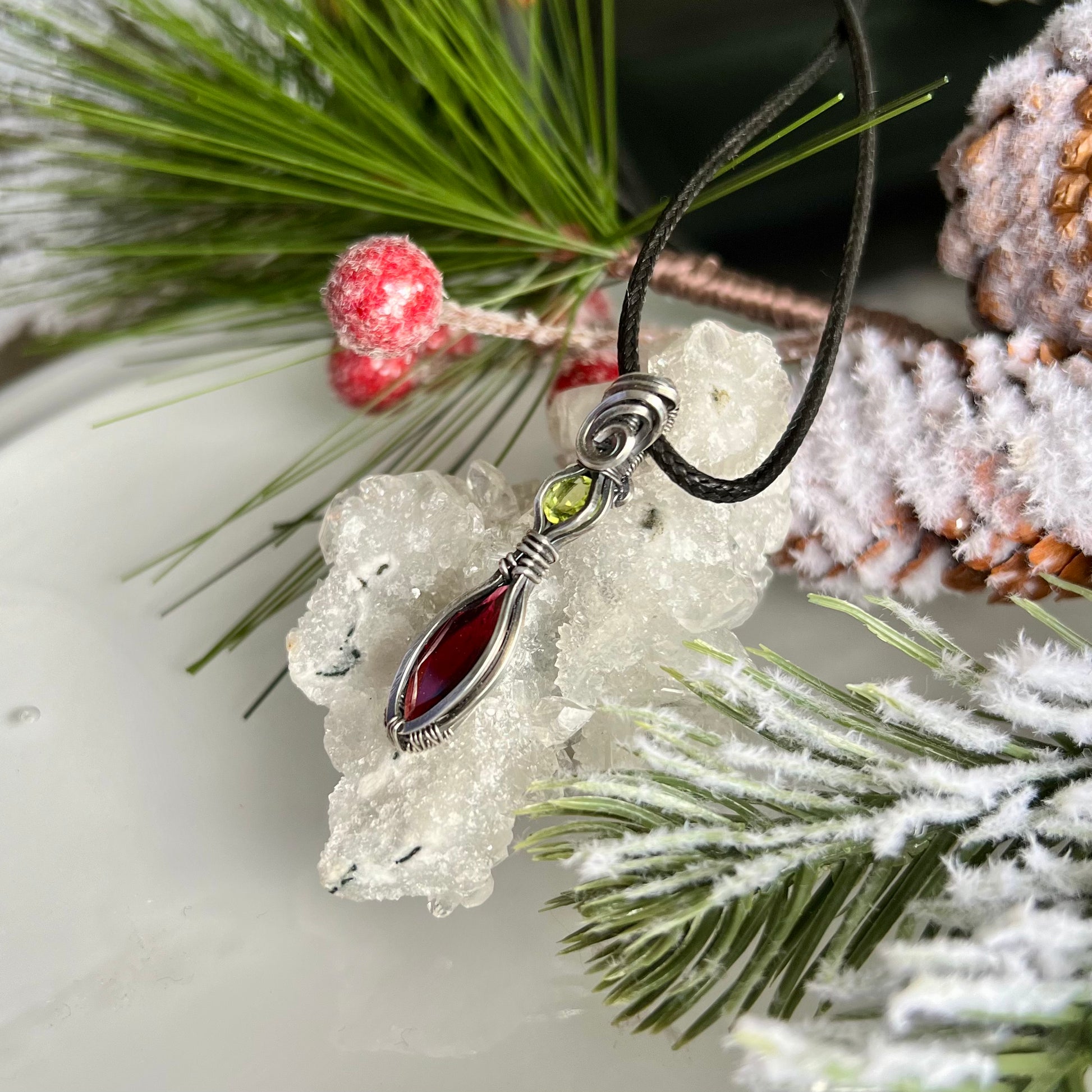 Garnet with Peridot Pendant in Argentium Silver