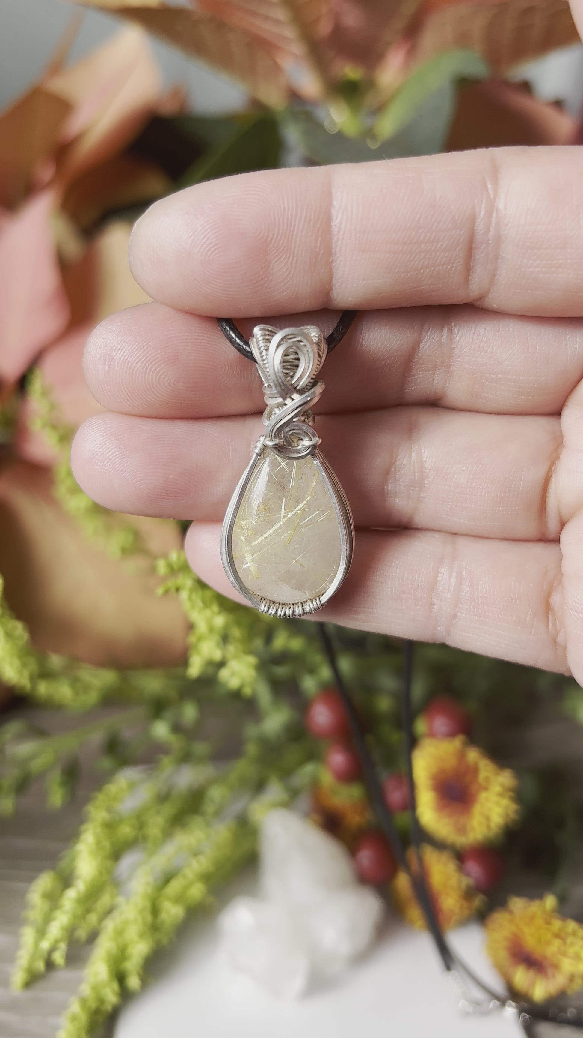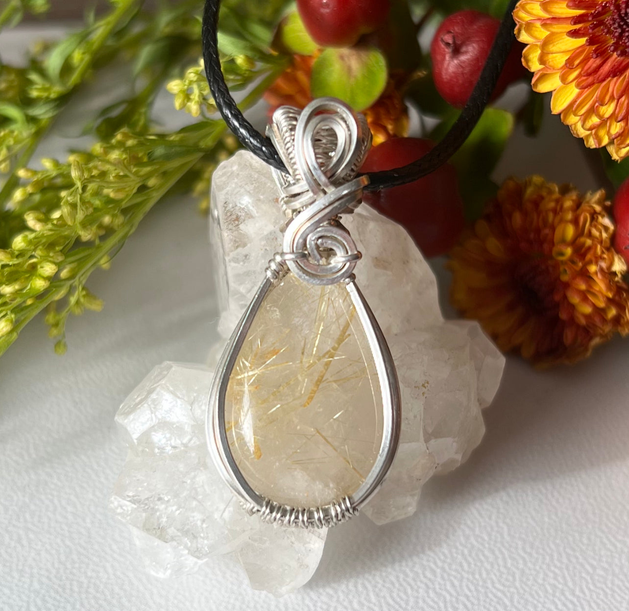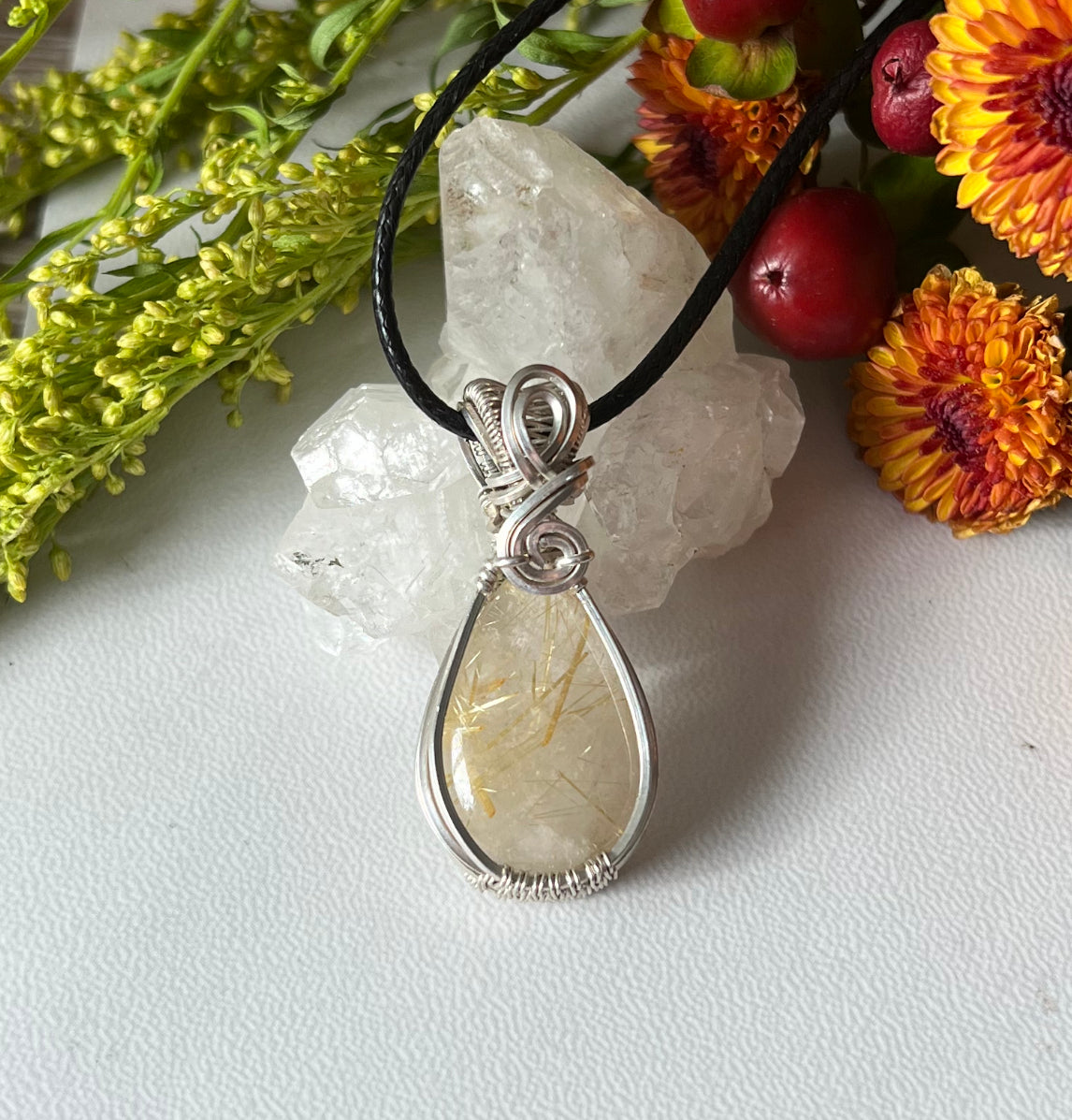 Golden Rutilated Quartz Pendant in Argentium Silver