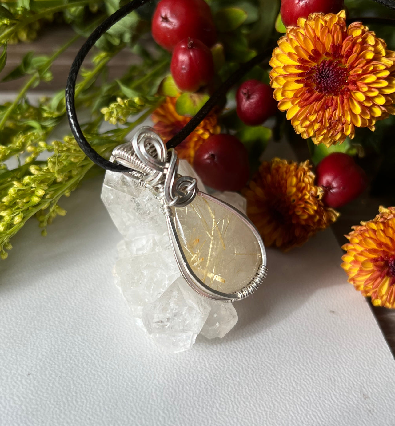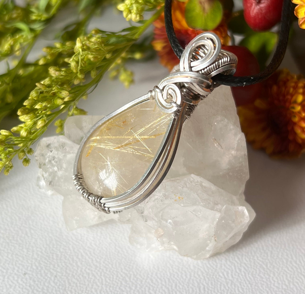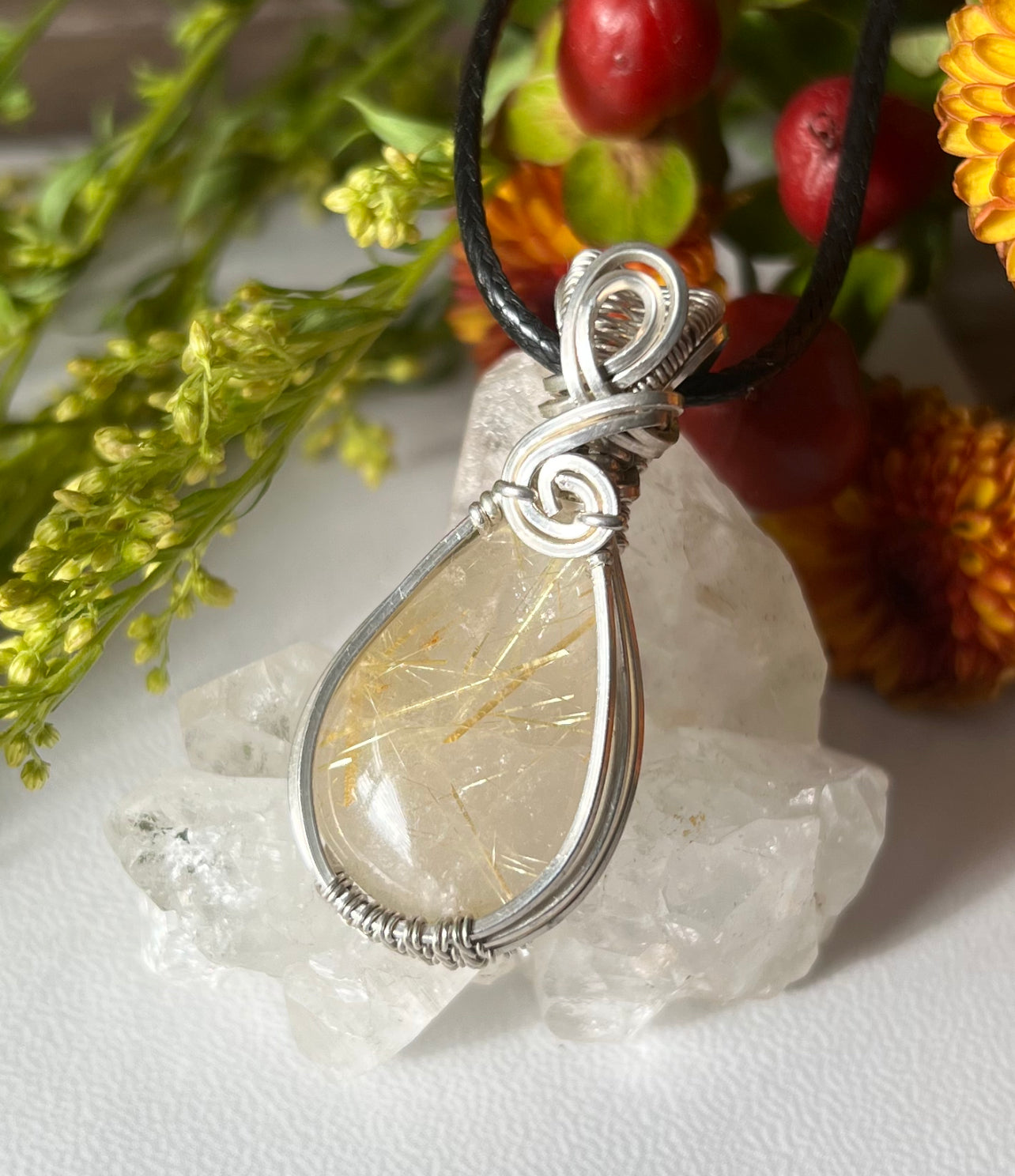Golden Rutilated Quartz Pendant in Argentium Silver