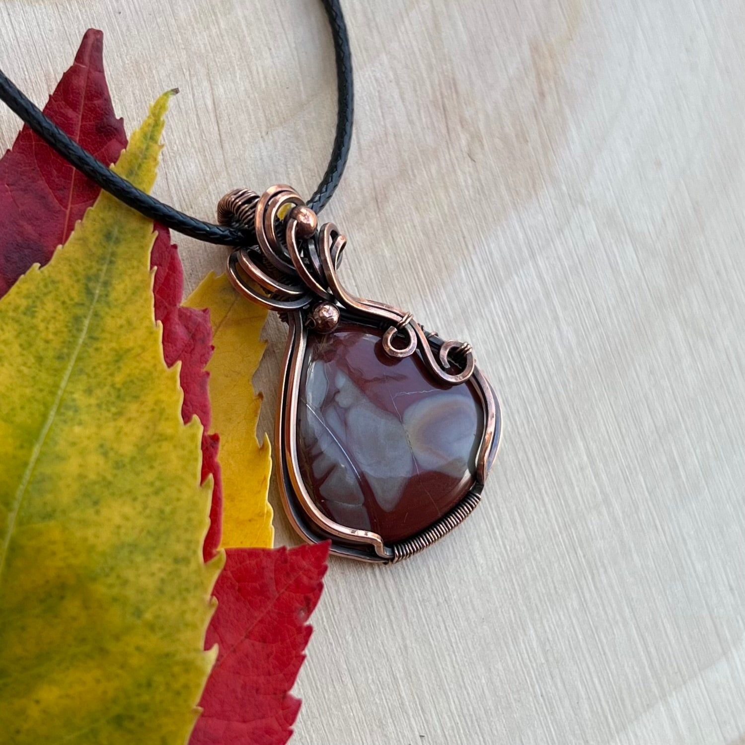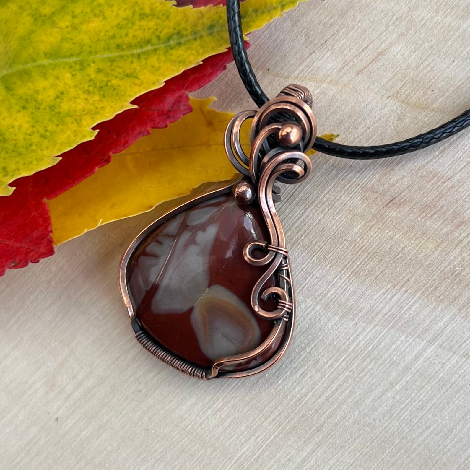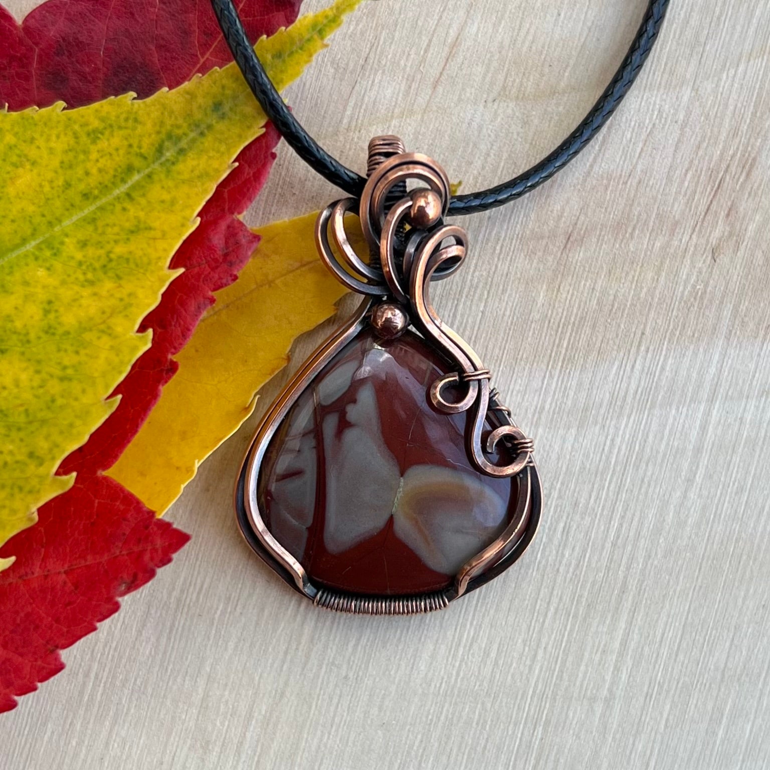 This pendant features a spectacular Noreena Jasper, wrapped elegantly in antiqued Copper wire.