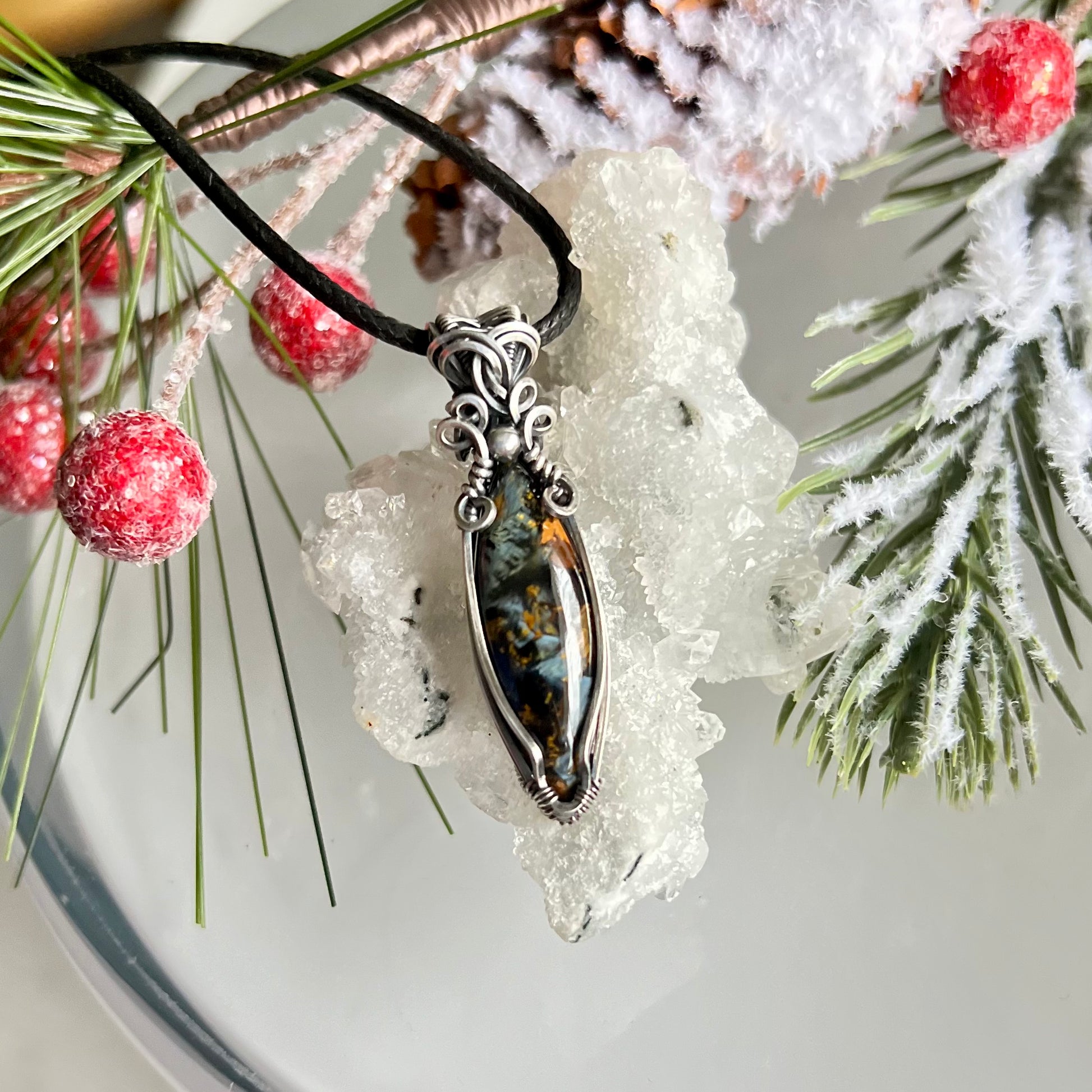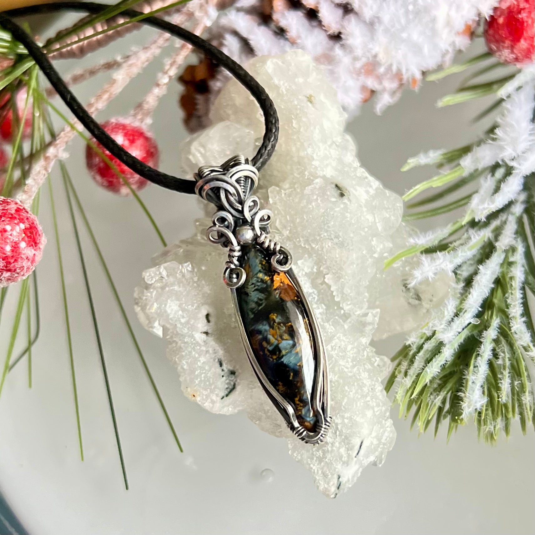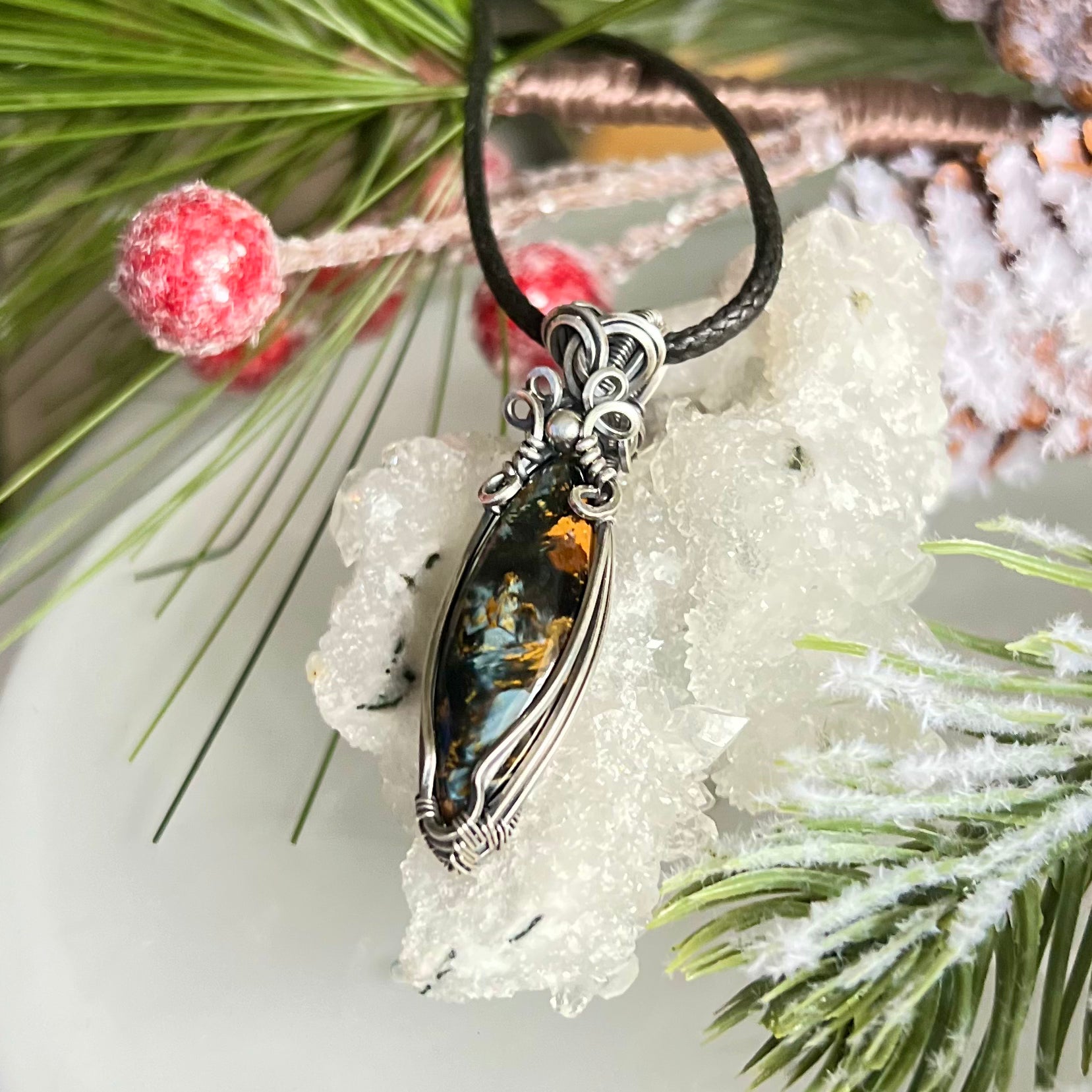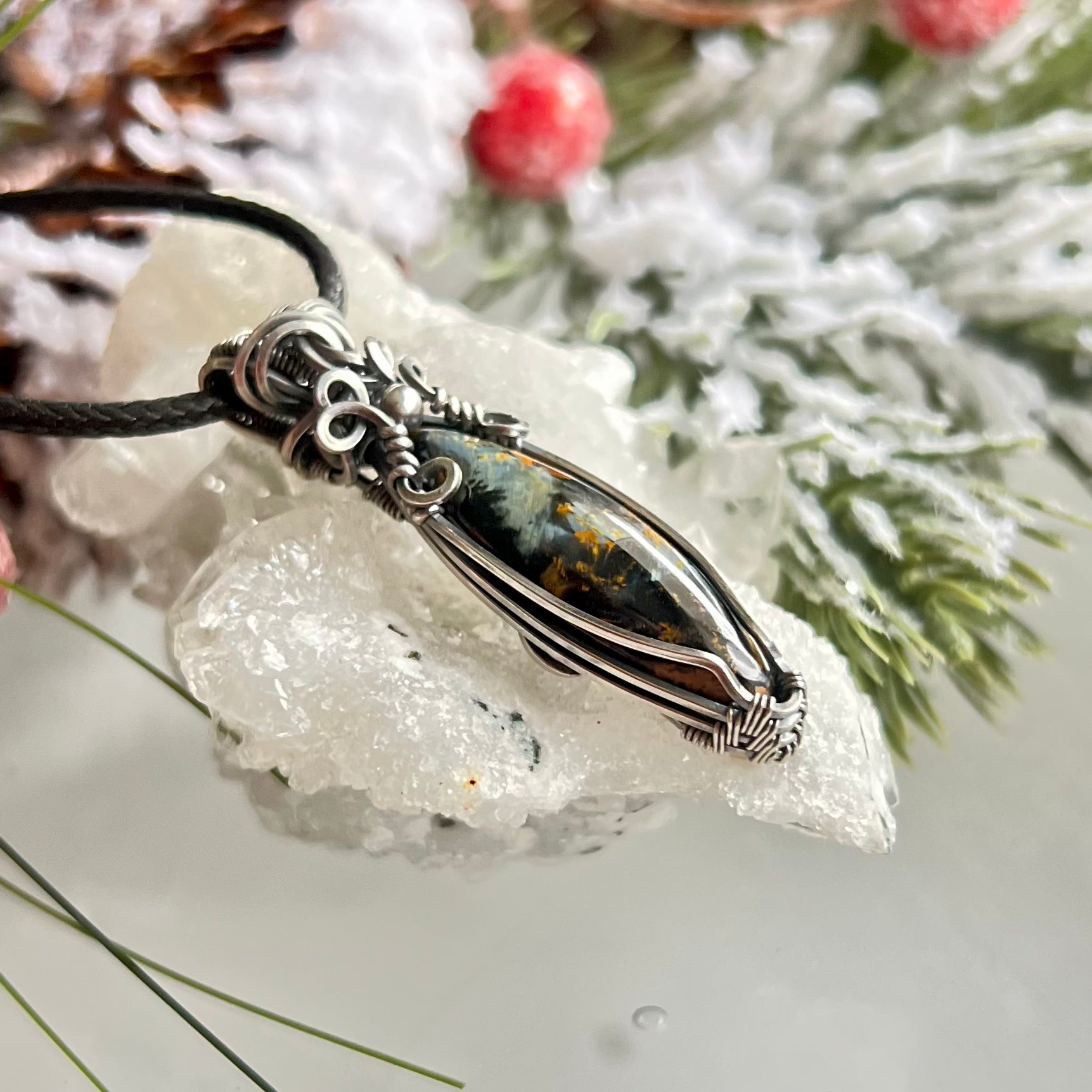 The royal play of light that rolls across this Pietersite is so gorgeous! Set in Sterling Silver then oxidized and hand polished! Perfect gift for yourself or loved one.
