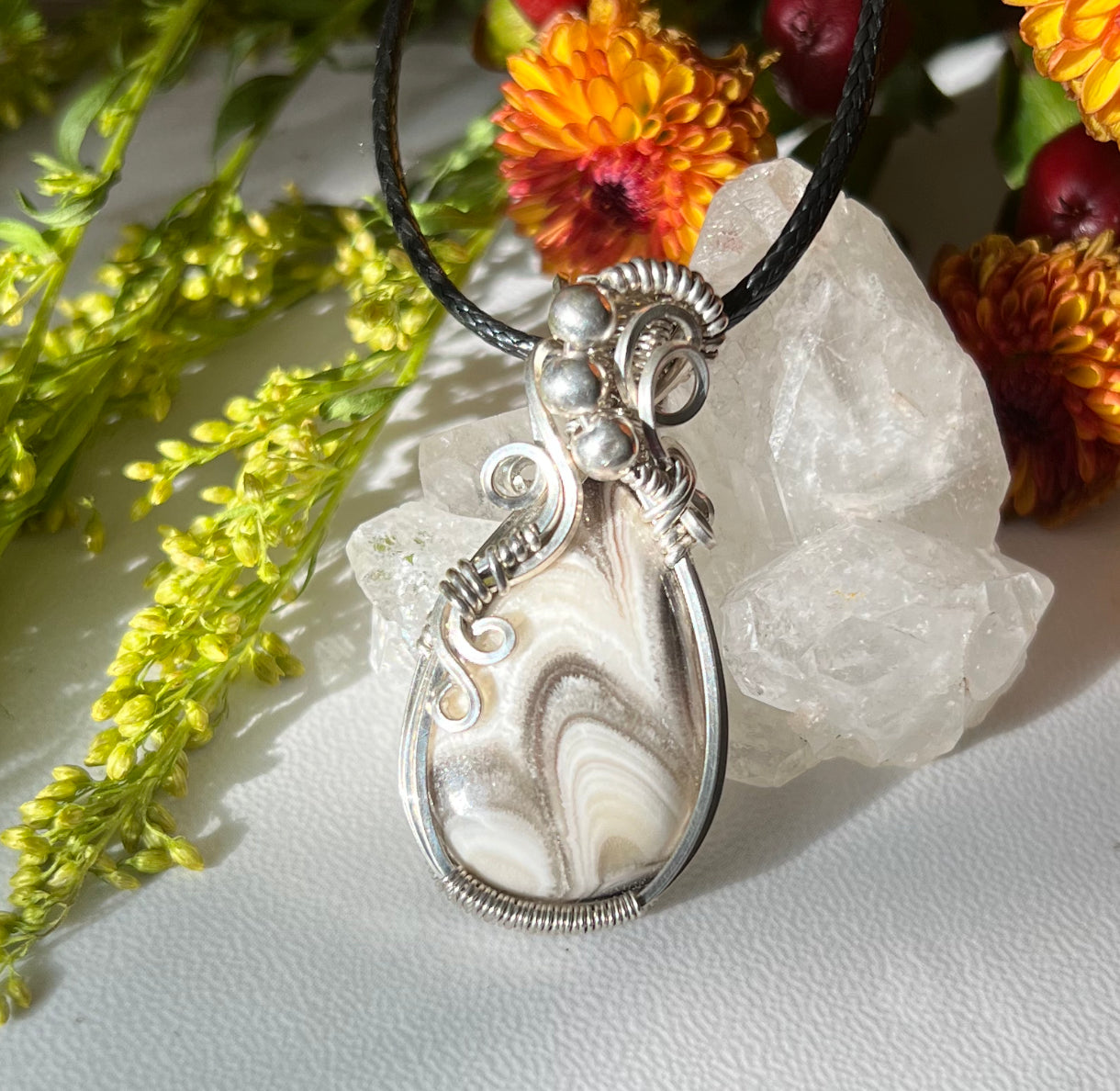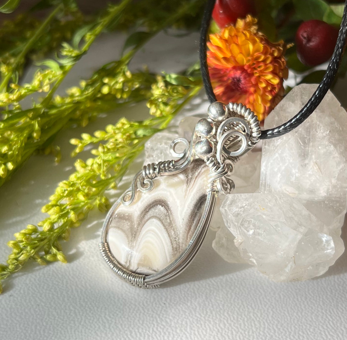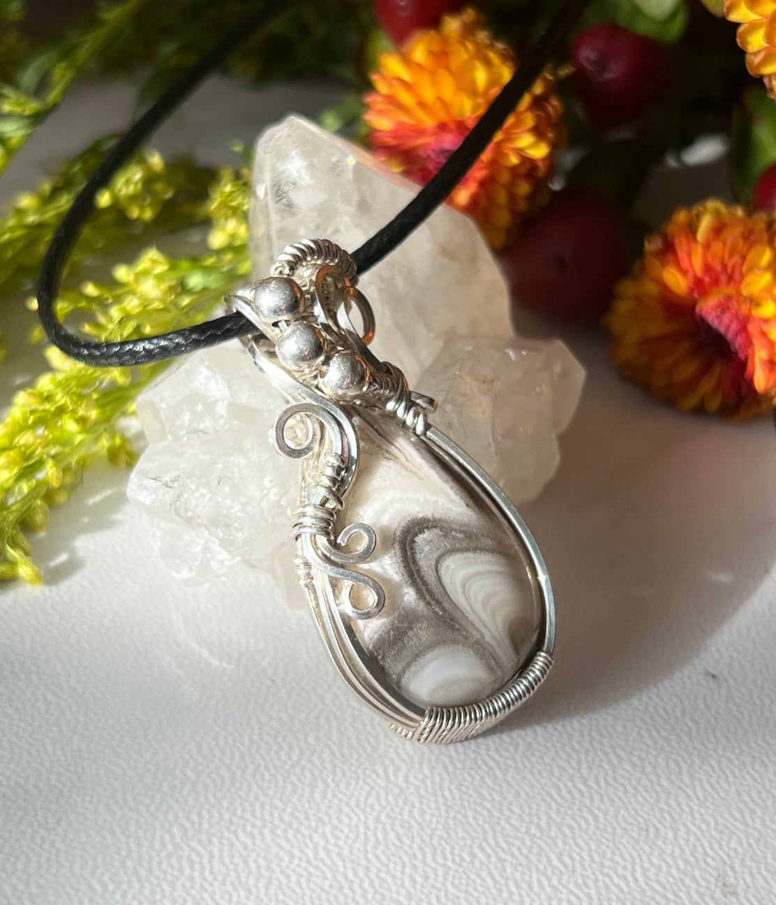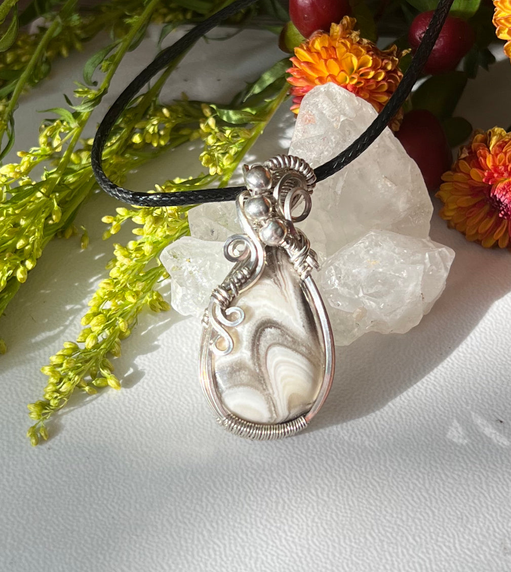 Zebra Calcite Pendant in Argentium Silver